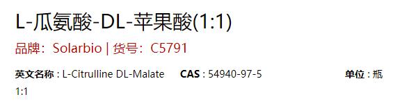 L-Citrulline DL-Malate 1:1 L-瓜氨酸-DL-苹果酸(1:1).-常用生化试剂-试剂-生物在线